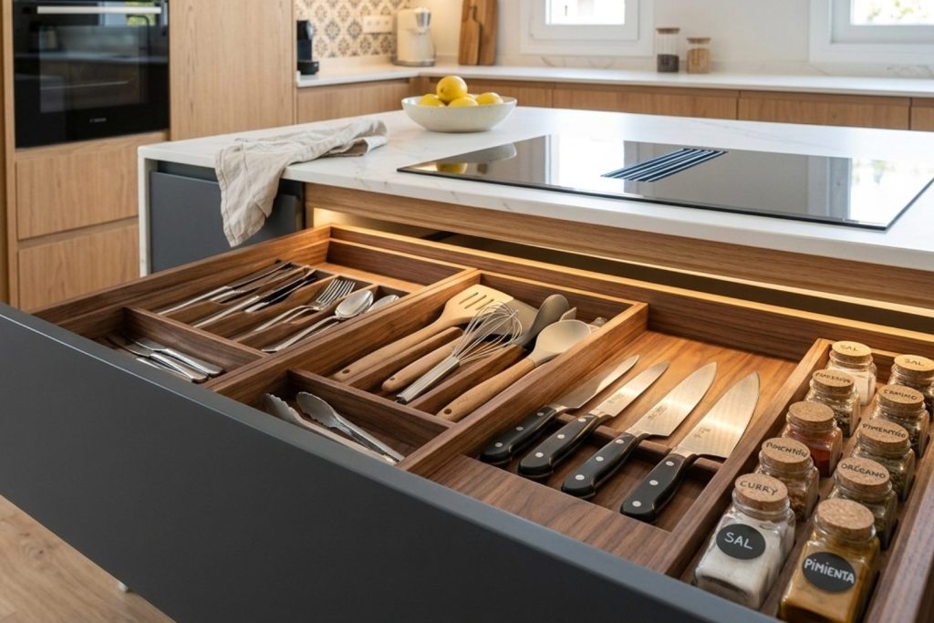sistemas de apertura, la distribución interior de los muebles o la integración