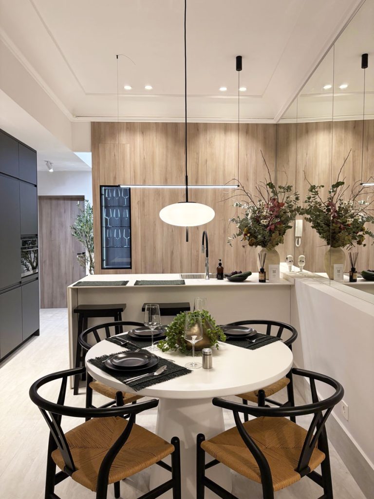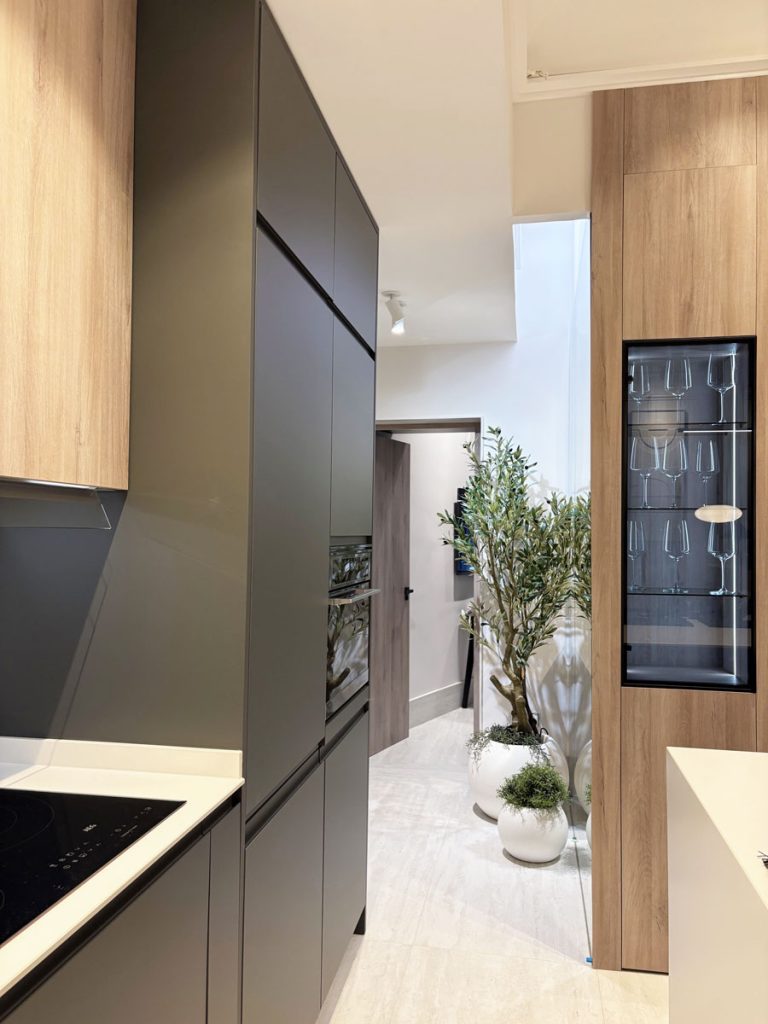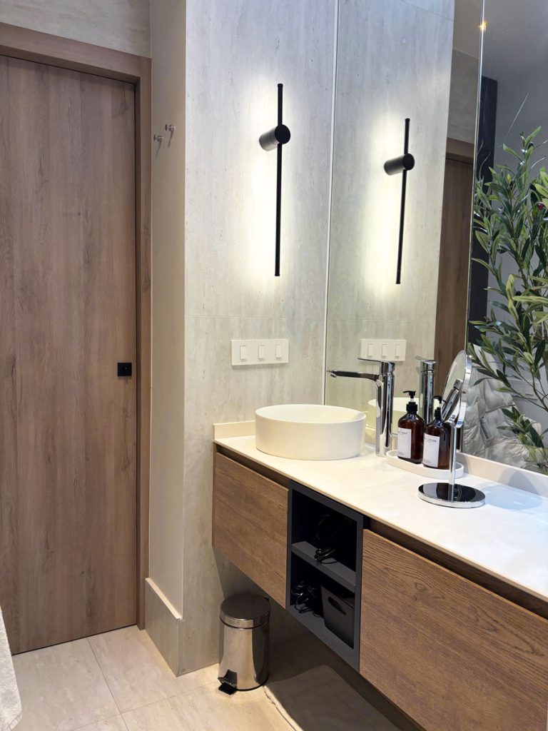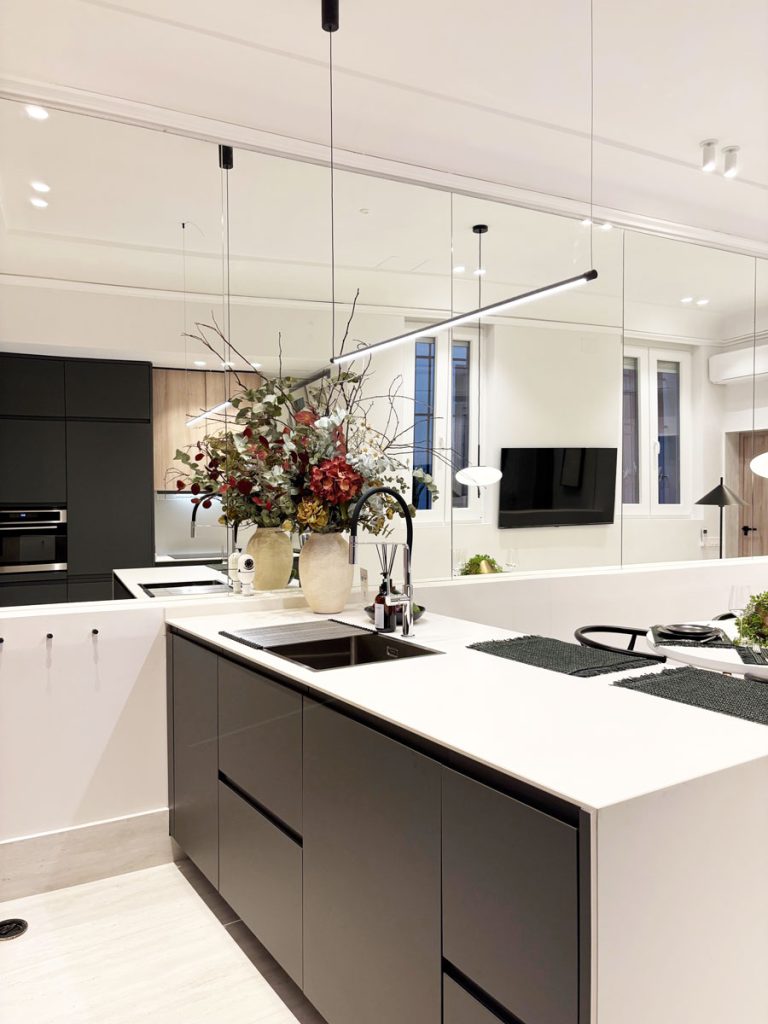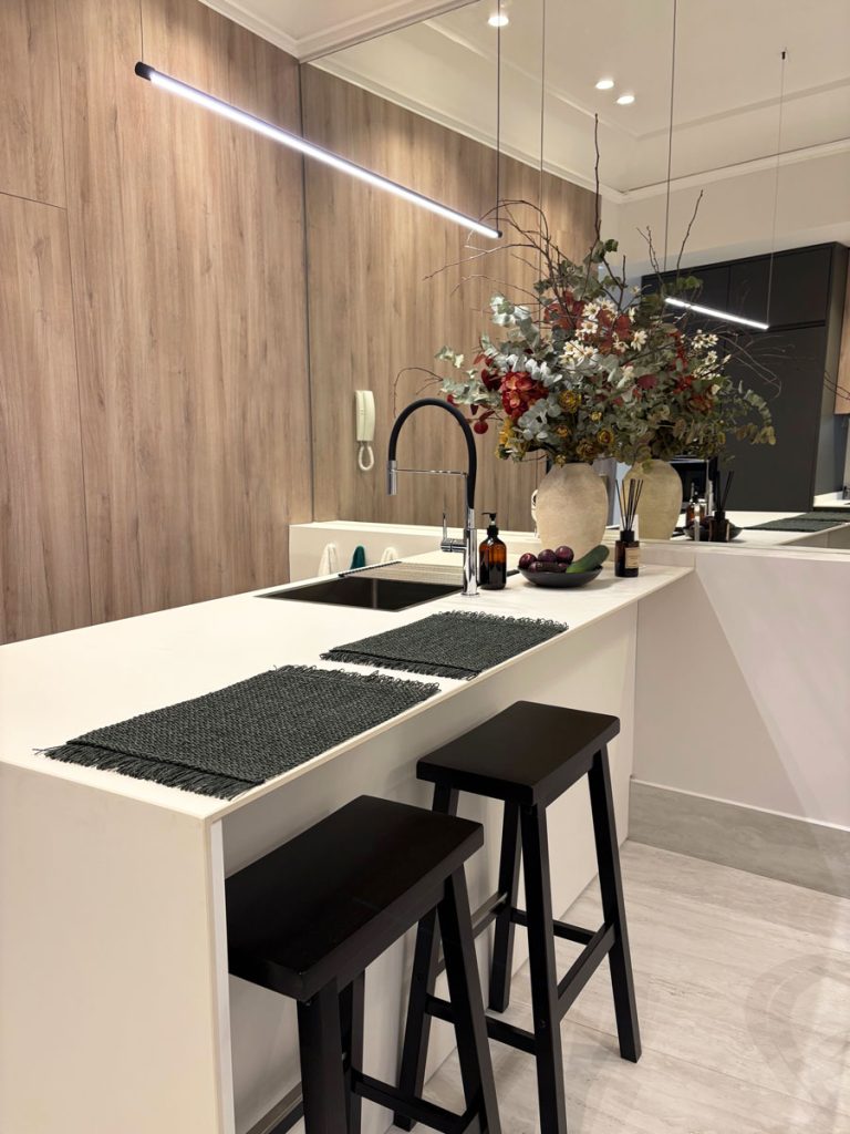 A través de la carpintería conseguimos darle continuidad estética a toda la casa, y maximizar los espacios, ya que en este proyecto todo esta diseñado y fabricado al milímetro: la cocina, el pasillo, las puertas de casa, los muebles de baño, los vestidores minimalistas e incluso las literas.